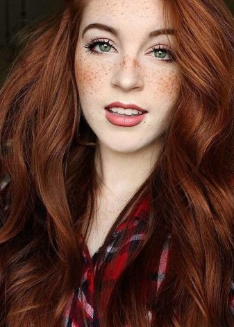 - owners of brown or green eyes, especially in combination with pale skin; however, the brown-eyed ladies may have fiery shades to face, but in this case the color will have to be chosen so that it competes with the iris;