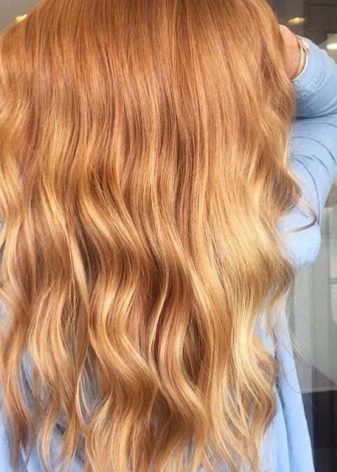 It is quite warm and feminine color, which has many interesting modulations. A rich shade is best placed on light and medium blond strands, but brown women need preliminary brightening of the strands with the help of strong oxidizing agents.