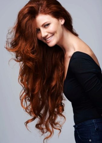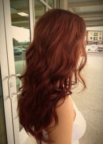 Otherwise, this color is called auburn. It looks quite naturally on the strands, especially if the woman has dark skin. For applying such a color does not require prior bleaching, it fits well even on the natural base of dark hair.