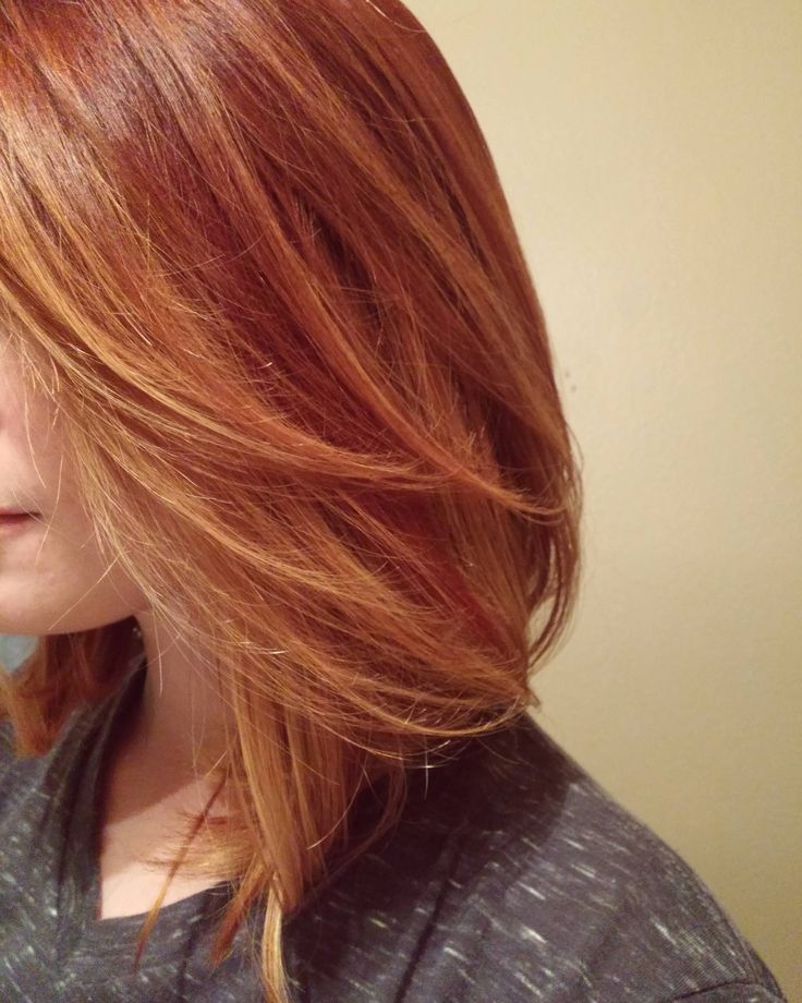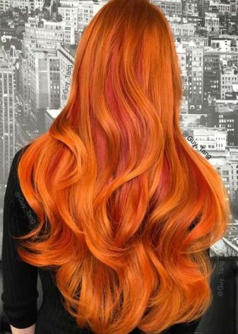 This is a classic version, which is considered pure warm tone of red. Such shade can be easily obtained on any hair no darker than blond. If native strands are black or dark brown, then here we will try to pre-light.