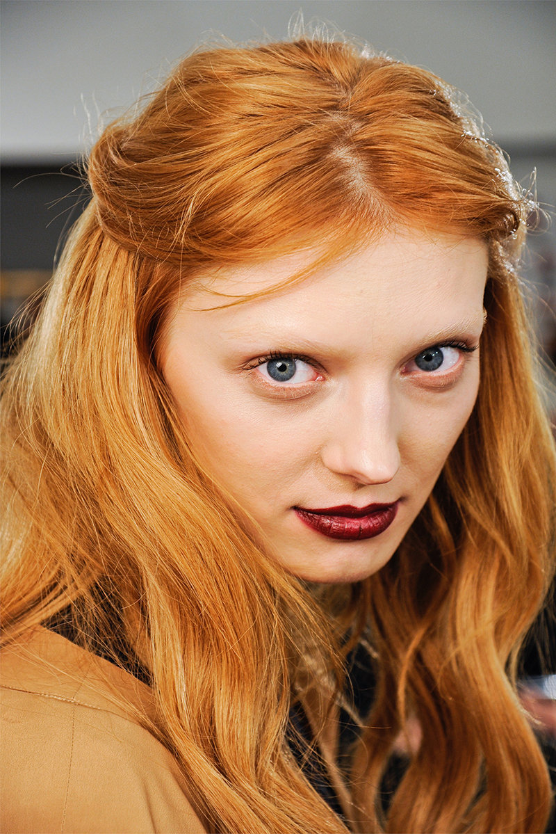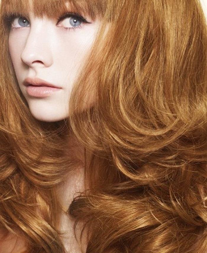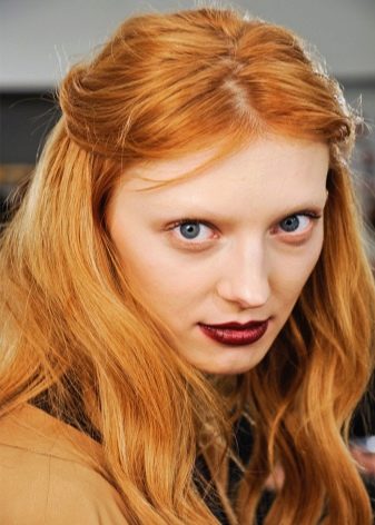 - The color of the iris. No less important when choosing the optimal tone is eye color. Best of all, fiery shades are combined with green and brown eyes, but for owners of light blue or gray eyes it makes sense to opt for copper and gold solutions.