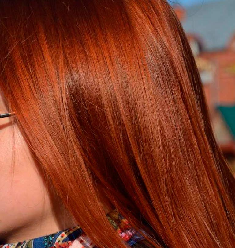 This color is obtained when the copper tone is combined with the purple one. In perception, this is a rather complex tone, but it does not require any prior bleaching.The tone is suitable for natural color from dark brown and darker.