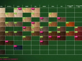 Not all modern manufacturers in the range you can find dyes without ammonia, which will allow you to work even with seriously damaged curls and at the same time also will be treated to professional means for painting. In the composition of the paint "Essensity" there are natural oils that are able to qualitatively restore the hair, as well as an increased concentration of pigment, which guarantees excellent toning.