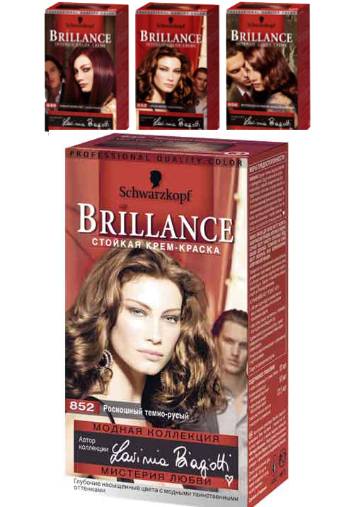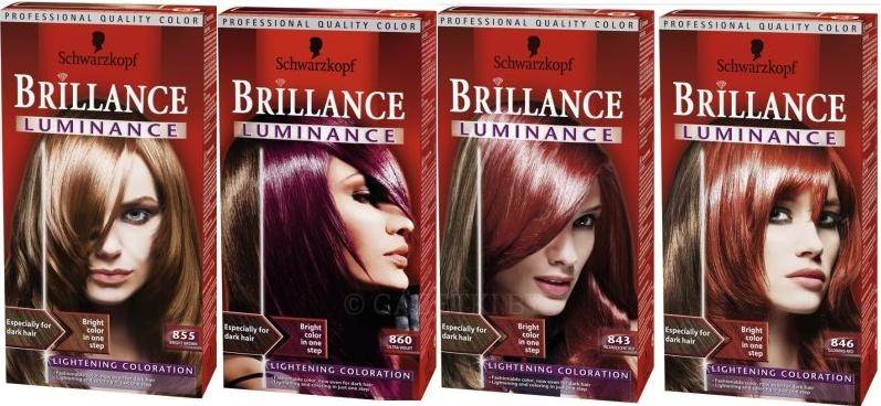 The line of Brillance Luminance is one of those colors, which is focused mainly on the owners of dark hair. The palette of this dye consists of 62 shades, which are divided into subgroups - both for light and light brown, and for chestnut and black curls. Among them it will be easy to find the right one for you.