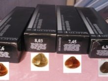 The abundance of shades is also an advantage of the Selective Professional line. If for some reason the desired shade was not found, the colors are perfectly mixed together to create unique shades. The manufacturer claims that the composition of the dye composition has been worked out so carefully that in the end there will not be any color surprises when mixing tones and when coloring in one tone. When using one tone, the result will be the color declared on the package, adjusted for the color of the base on which the paint was applied.