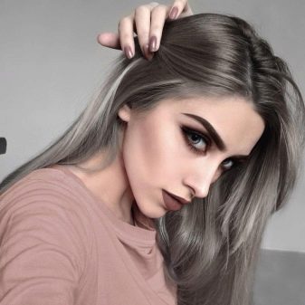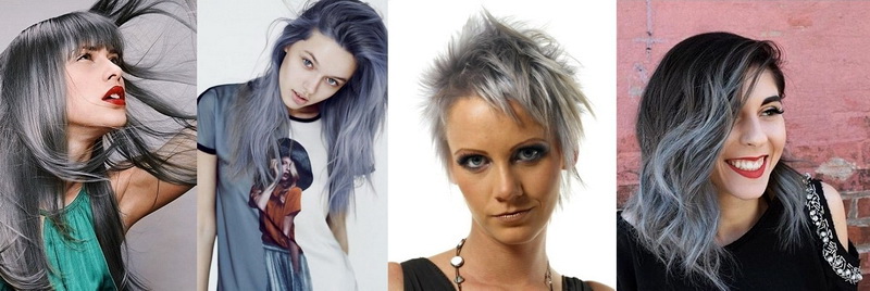 Gray color has many shades, and the palette of professional paints is represented by a rather wide range. Among them are colors: light, dark, gray-white, gray-black, gray-blue, silver and others. It is very important to choose the right shade, determine your color type in advance, take into account the style of dress, and only then choose one or another tone.