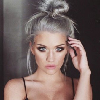 Beautifully silvery strands look on young girls, they bring an extravagant style to the image. Do not give up these bold shades and women over 45, as this unusual tone will reliably hide gray hairs, create the image of a noble lady. Particular attention to bearers of gray hair should be paid to makeup. It is better to turn to the advice of professionals. Wardrobe is also of great importance, but in this case it is important not to overdo it, so that the image does not come out vulgar.If a girl feels that she has not yet developed a good taste and sense of style, it is better for her to give up her gray hair.