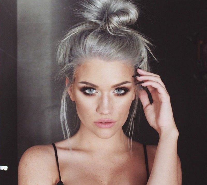 Gray hair color allows its owners to experiment with hairstyle, manner, often change the style. These are spectacular persons who rivet attention on the street with their audacity to experiments. Therefore, gray hair is difficult to call a mouse and boring, especially if an experienced makeup artist helps to create a unique image. Relatively speaking, gray hair is not everyday, shades of gray in this case can be safely equated to self-expression.