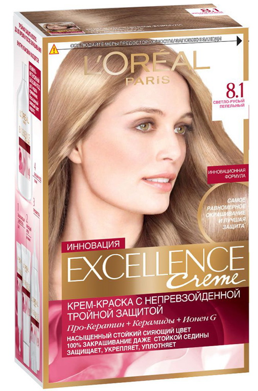As presented above, this brand belongs to professional paints, therefore dyeing is recommended to be carried out by a specialist. It has a creamy structure and therefore is easy to apply on strands. Qualitatively masks gray hairs. Easily washed off the scalp. Ash tones have numbers 9.1, 8.1, 7.1, ashy blond - 11.11.