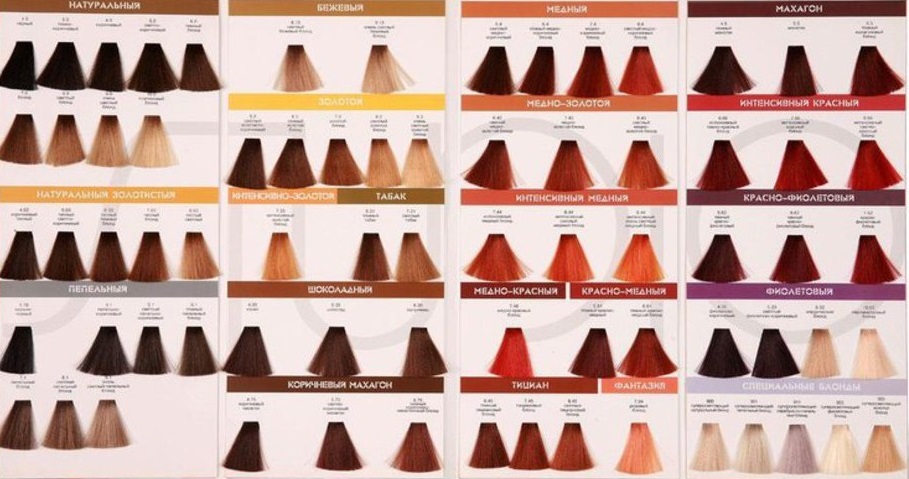 Starting with the number 8 and going down below, the shades become darker, leaving a chestnut, chocolate, dark brown color. Tint mahogany, coppery with a red subtone, dark blond.