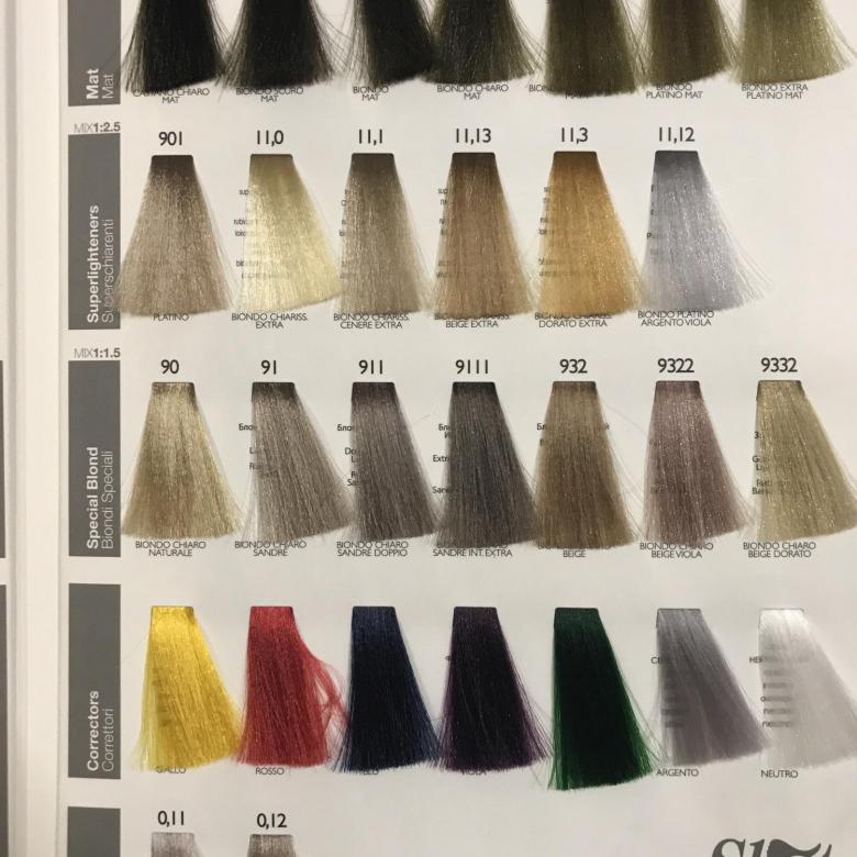 It follows that all shades of the blond are marked with numbers (first) 11, 10 or 9. For example, 11.12 is a platinum blond (he will give a subtone with purple silver) or 10.32 - platinum blond (the subton will be beige).