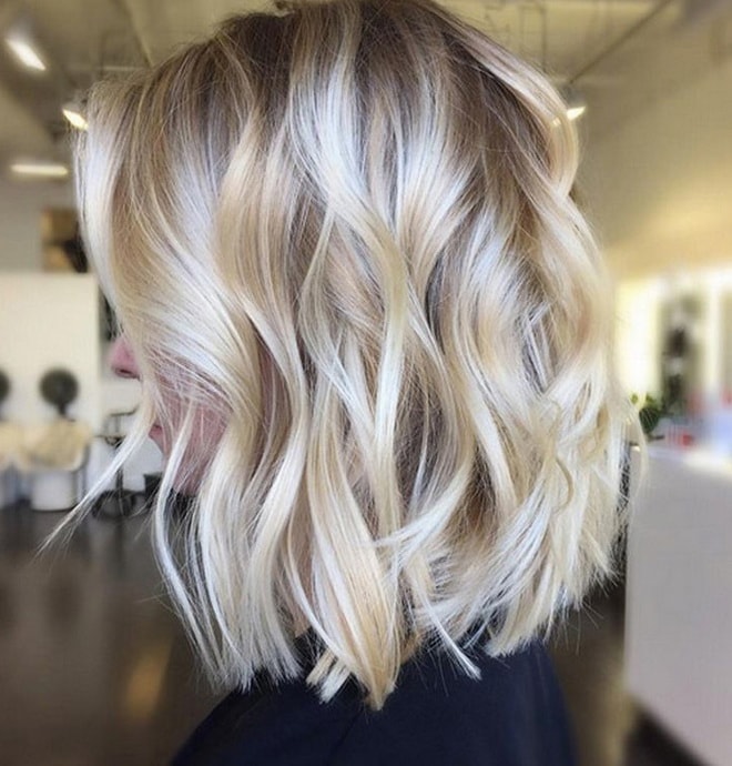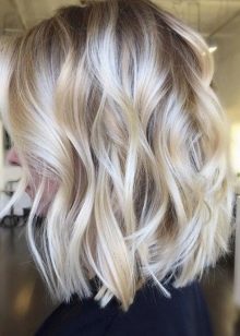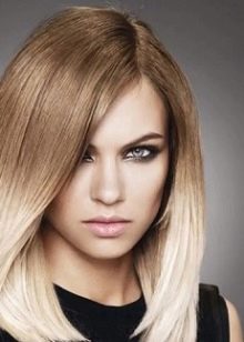 - Ombre staining. The essence of this technique lies in the fact that the brightener and dye in a shade of blond is applied only on the tips of the strands or on the canvas of hair below the ears. The result is a smooth transition from dark to lighter shade.