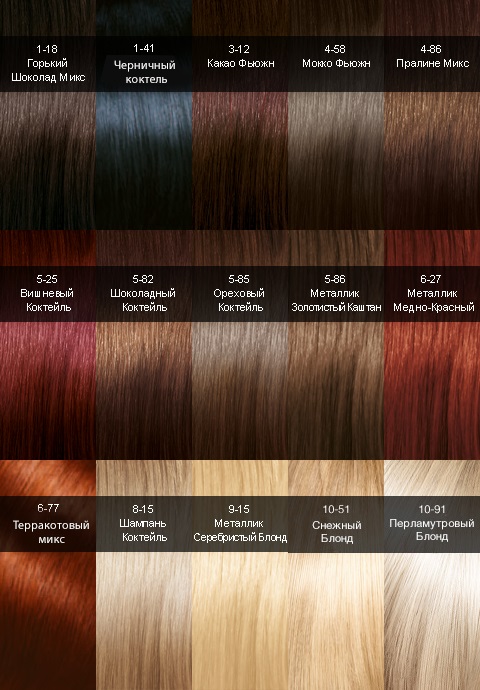 Among the light shades, one should pay attention to the champagne cocktail (8-15), from dark colors the praline mix (4-86) and the mocha fusion (4-58) are reliable. If you are turning to red hues, then experts advise to stop at the cherry cocktail (5-25) or the terracotta mix (6-77).