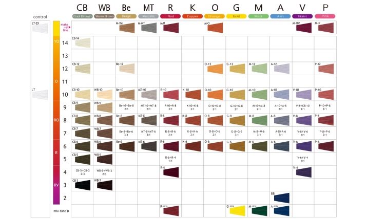 A number is added to the letters indicating the tone: red, blue, purple, green. This leads to the fact that Lebel has hundreds of shades in its palette. Among them there will definitely be one that you like.