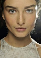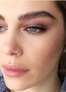 Eyebrows are so colorful that the eyes do not require makeup, because eyeliner and mascara in one layer is enough.