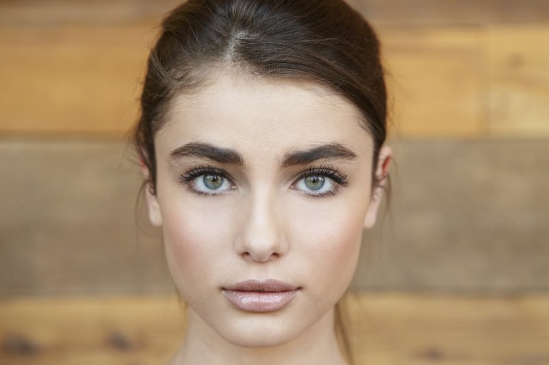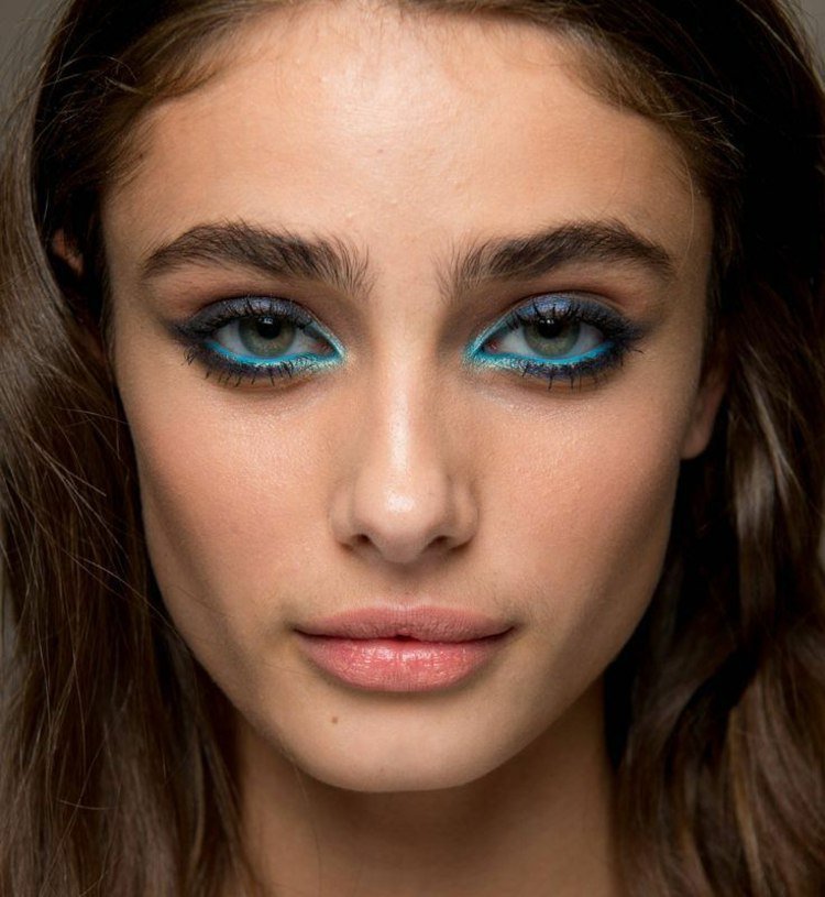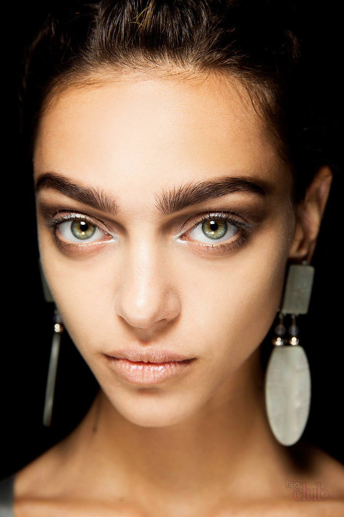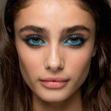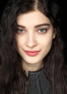 Here is a brunette girl, and her eyebrows are of black, deep color. They are thick and wide - so the look becomes even deeper, and the blue color - brighter.