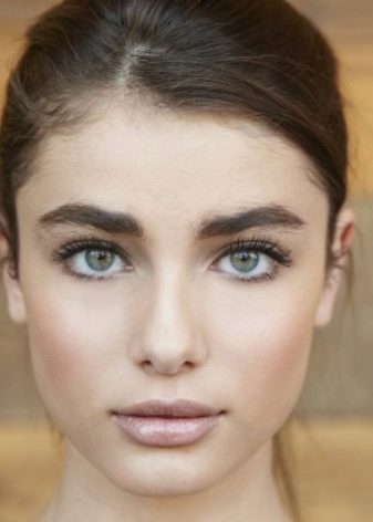Makeup artists include types of thick eyebrows: arched, straight, curved, long, short, thin, thick variants. The type is selected depending on the shape of the face. Straight form is suitable for round-faced girls, arcs look good on oval faces, curved ones - on triangle face. When selecting the length it is better to conduct experiments.