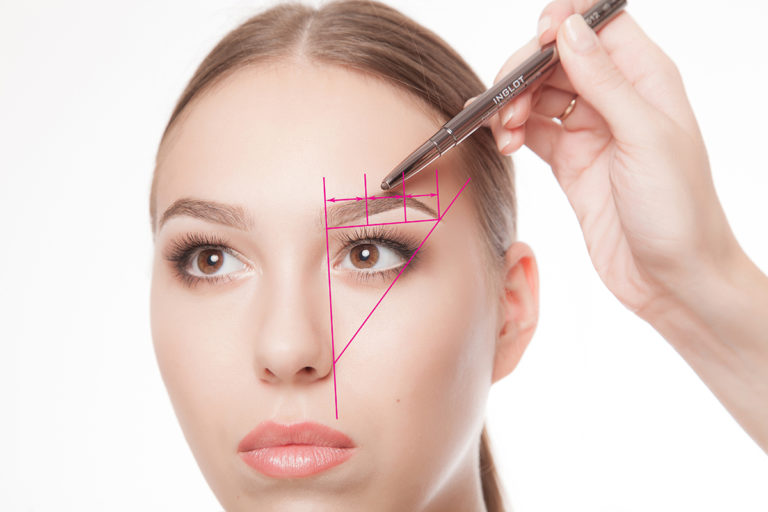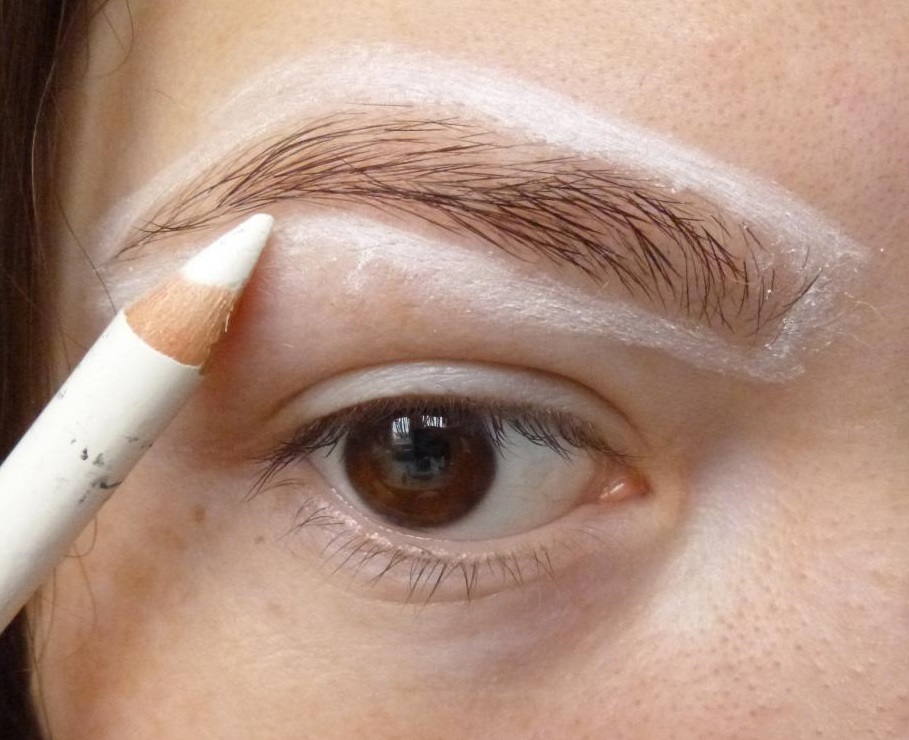 If difficulties arise in the design of the contour, you can make a "markup" eyebrows. To do this, use an ordinary pencil or pen. In front of the mirror, lean a pencil parallel to your face against your face. The tip of the pencil should be placed at the corner of the eye. This will be the start of your brow.