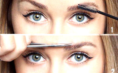 With a combined eyebrow shaping (scissoring and using tweezers), first give your preference to a haircut. Tweezers hold the final adjustment - removal of unruly hairs that did not manage to cut.