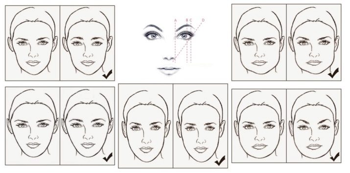 Eyebrow shaping principle with a rectangular face the same as in the square, but with some differences. First, the brow should be longer, which will significantly help to narrow the face. Secondly, the bend should not be too high.