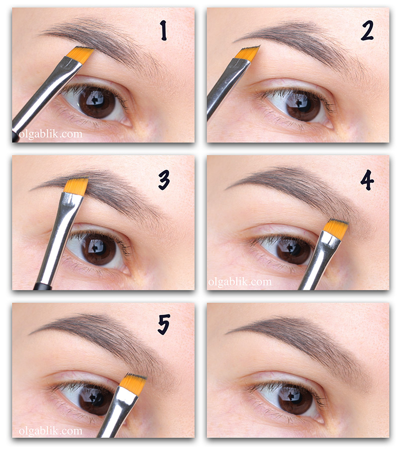Professionals usually perform a darker color bend and tip of the eyebrow, and a lighter shade is applied to the beginning of the eyebrow, carefully shading the border between colors. This allows you to give the image a soft, natural.