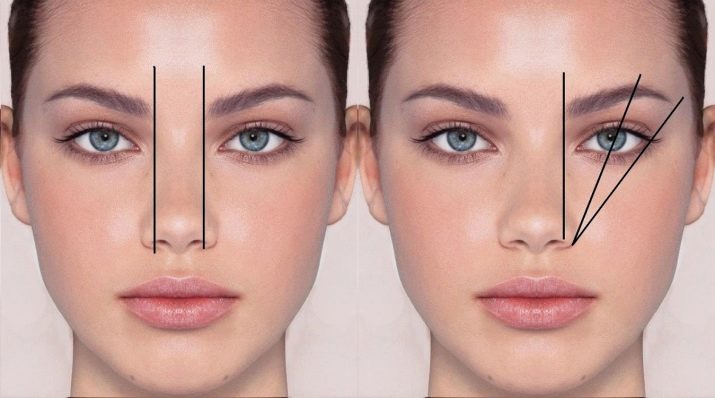 With close eyes set, it is recommended to increase the distance between the eyebrows. Widely spaced eyes, in contrast, require a reduction in the distance between them in the nose.