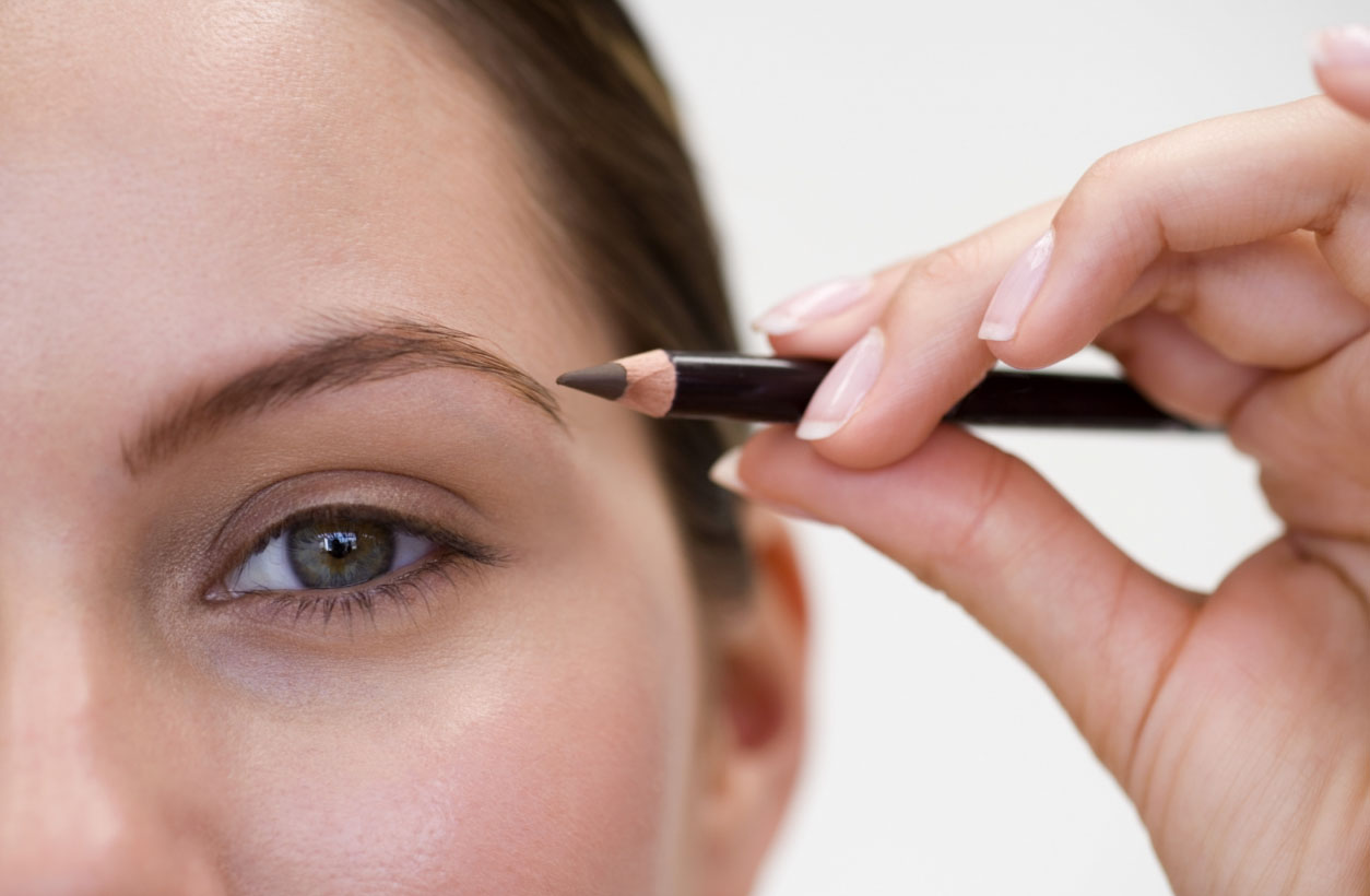 - It is not necessary to apply foundation to the skin around the eyebrows, as a pencil may slip, and the strokes will be fuzzy.