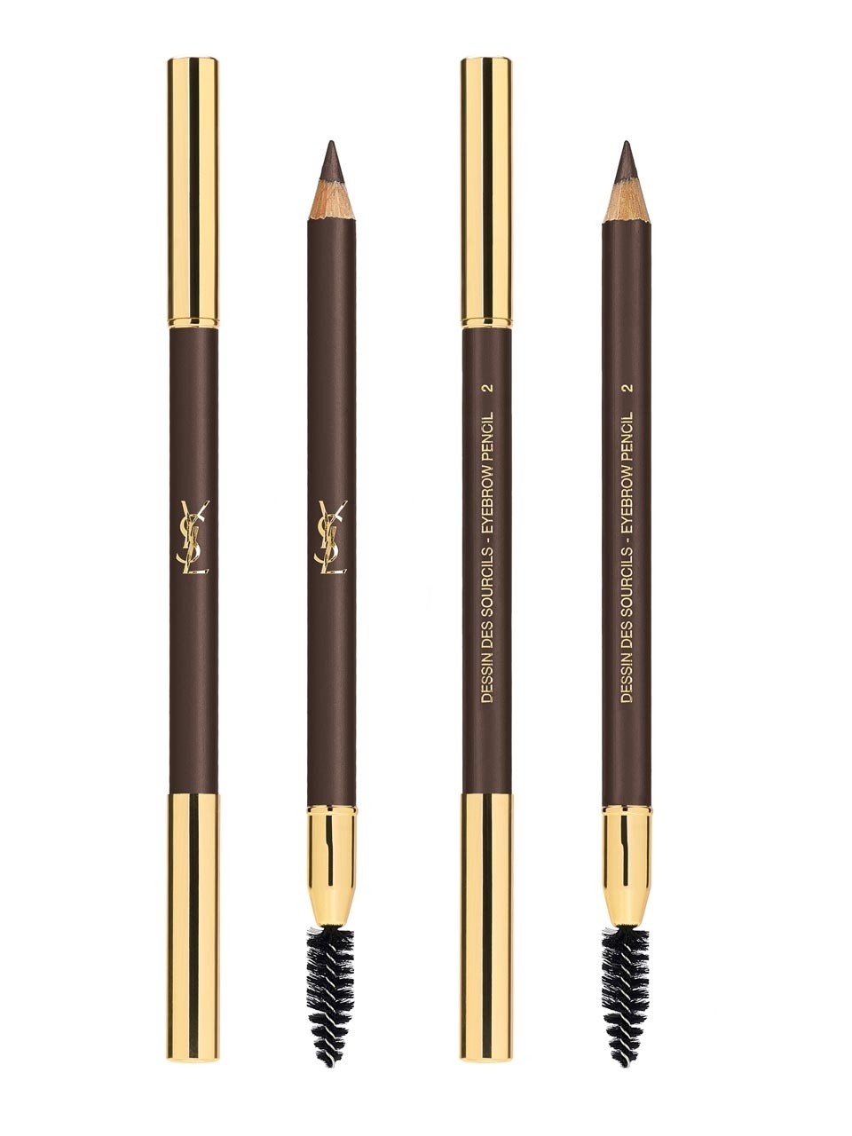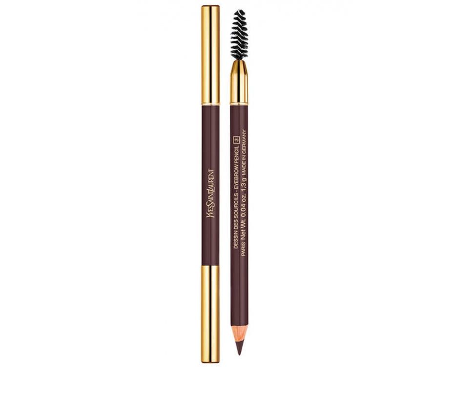 - “Dessin Des Sourcils” by YSL Beauté. This simple pencil includes a compact brush. And the slate pencil contains coconut oil for the care and nutrition of hairs.Colors are noble and rich. The size is very compact, which makes it easy to take with you on trips.