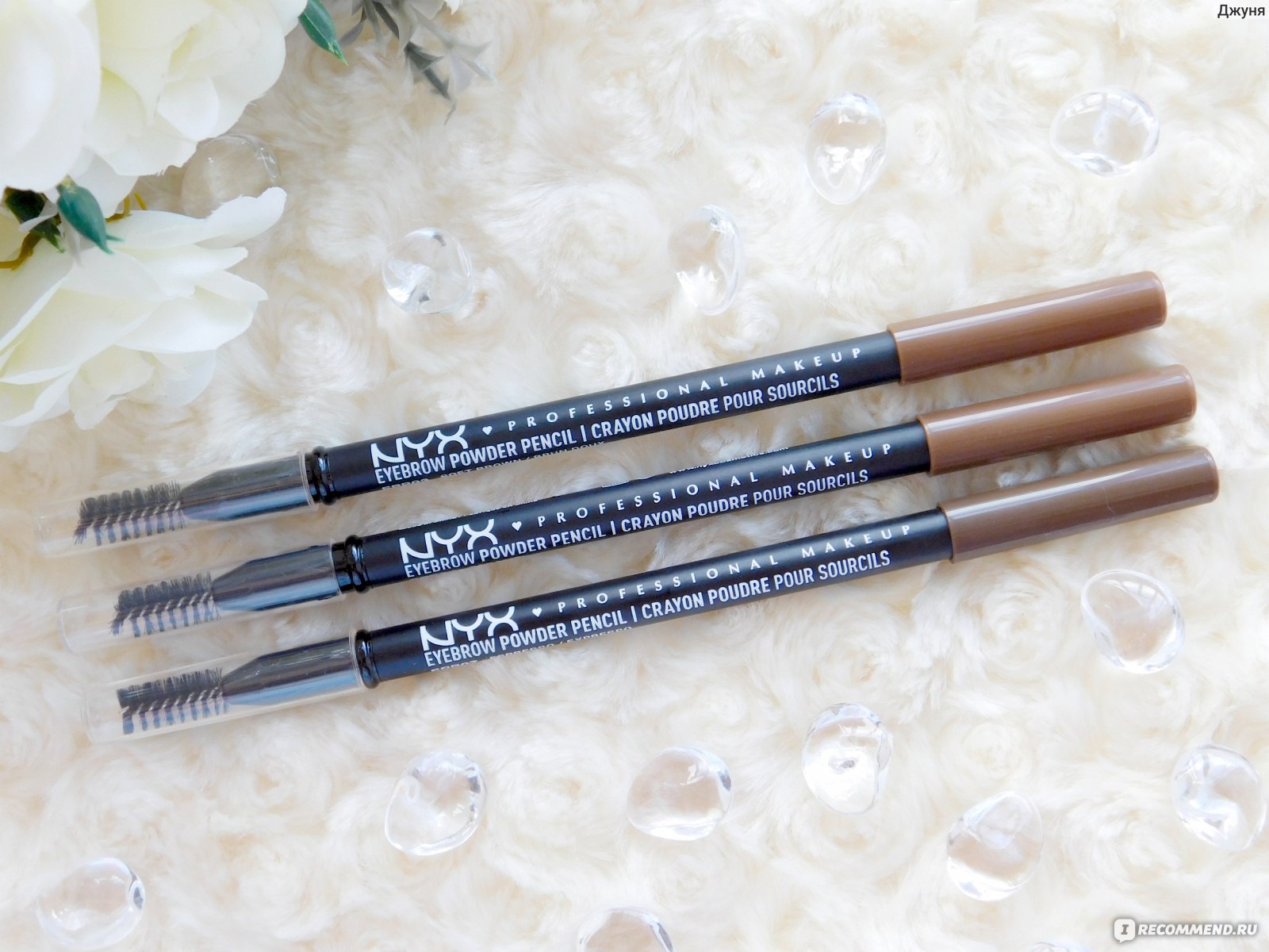 - Eyebrow Powder Pencil, NYX Professional Makeup. The texture of this variation is soft and powdery. It is well applied and easily shaded on the skin.