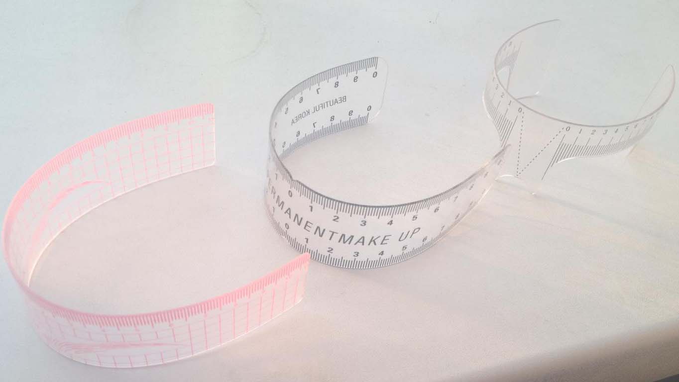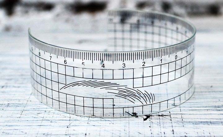 Initially, the plastic line was used in tattoo parlors when working on stencils. However, ease of use and low cost of the instrument contributed to its relocation to beauty salons. The line for the simulation is a soft plastic strip with applied divisions with a resolution of 1 millimeter. When using a ruler, it is possible to create a perfectly symmetrical pattern or, if the client has a noticeable face asymmetry, to perform a new pattern along the contour and the location of the growth of natural hairs.