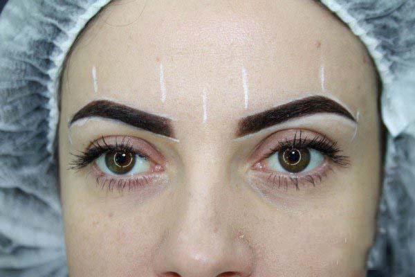 The resulting points and lines are connected in order to see exactly where you need to finish or remove hair, how to adjust the shape, draw eyebrows with a pencil or use powder.