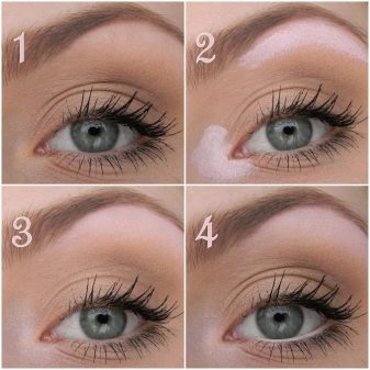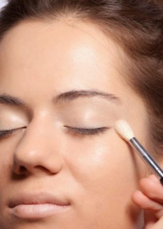 - shades of beige shades are applied to the upper eyelid, you can add pinkish;