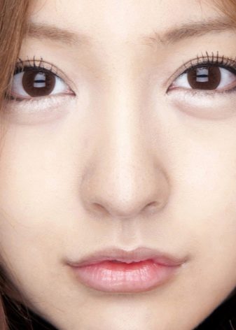 - If the upper eyelid looks wider, then the eyes will appear larger, so pay attention to the eyebrows. You can increase the distance to them simply by plucking the lower hairs with tweezers. But to bring to the state of a thin thread is also not necessary. Eyebrows should look natural. You can paint them with shades of natural shade or with a pencil, imitating hairs, fix the result with gel.