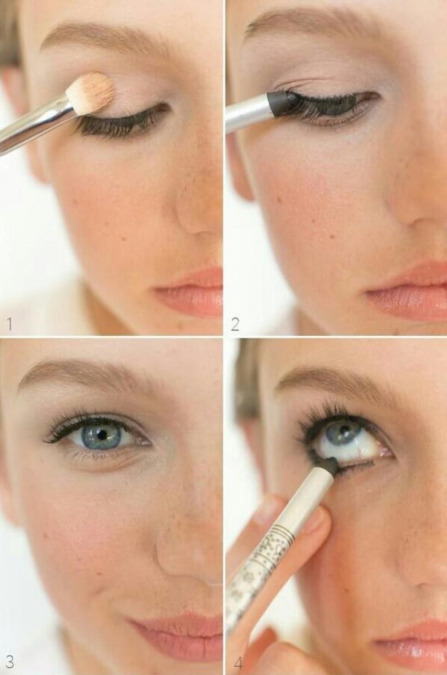 The contour clearly delineated in black pencil, as they say, is not the topic. And without that small eyes can be turned into two narrow holes. For our purpose, a white pencil is better suited, refreshing and opening look. If, after all, you do not want to part with black color, then you can bring, for example, only the upper eyelid from the outer edge. By the way, it will help to visually dilute the eyes to the side when they are close planted.