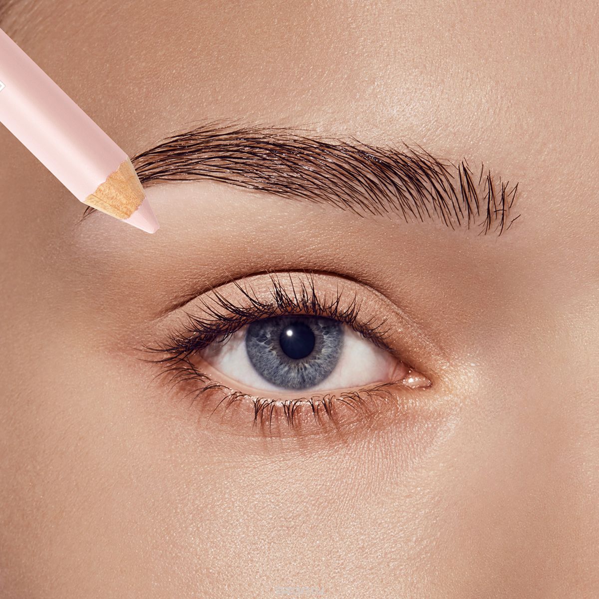 - Now you need to bring the contours. Clear dark lines are undesirable, so you should take a white pencil, especially since this is one of the trends of the season. It should be applied almost on the mucous. In the lower eyelid, you can grab the lash line.