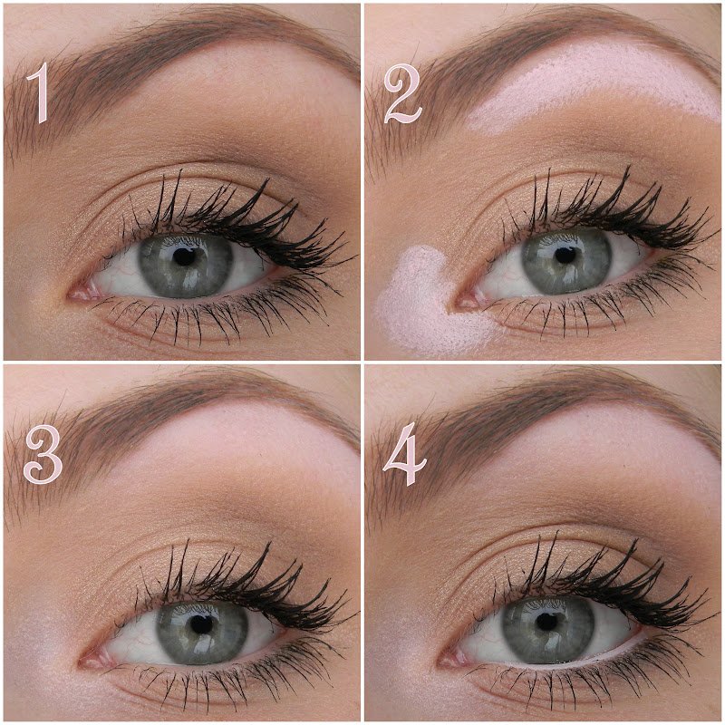 - white shadows, it is possible with a light pearlescent effect, should be applied in the area under the eyebrow and in the inner corner;