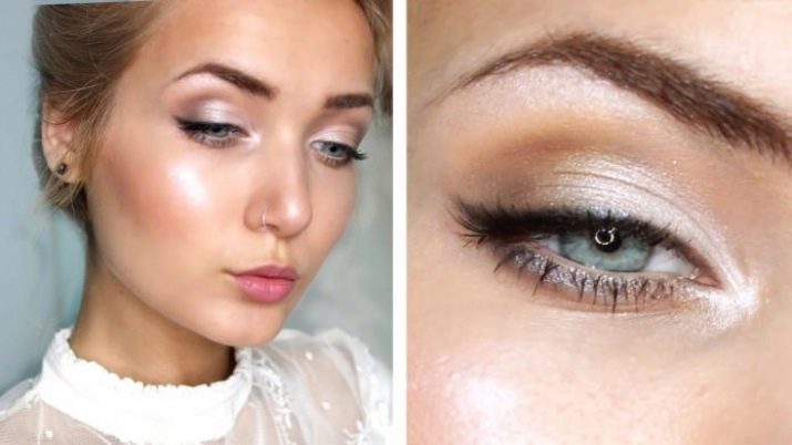 - Under the eyebrows is applied a thin strip of highlighterThat will help to visually lift them and open their eyes more. A little bit of the same means - on the inside corner.