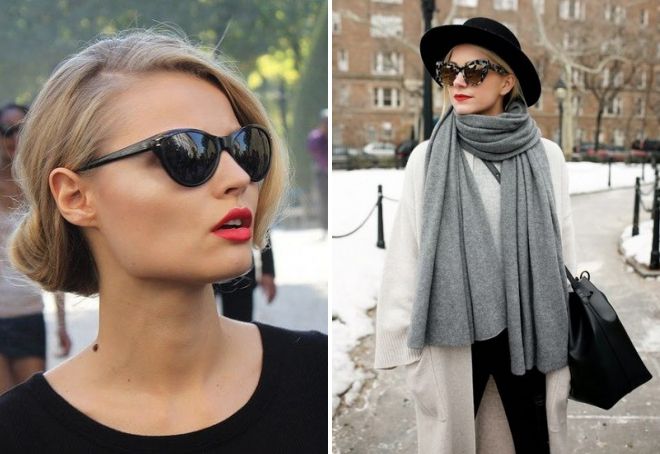 Stylists are not advised to choose too rectangular or small options, as they further emphasize the shortcomings of the face. Ideal are aviator glasses or large models that allow you to close half of the face.