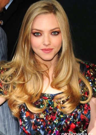- Famous actress Amanda Seyfried now and then experiments with a light shade of hair. On the carpet paths, it can be seen with a perfect golden or sand shatush, ombre and even full dyeing of the hair into a light shade. All options fit her best.