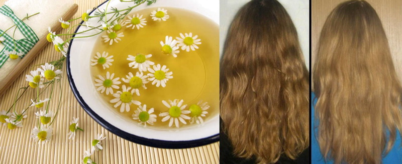 Blond hair discolor using chamomile infusion. For these purposes, a decoction is prepared from the dry collection, which is used to rinse the hair after washing.