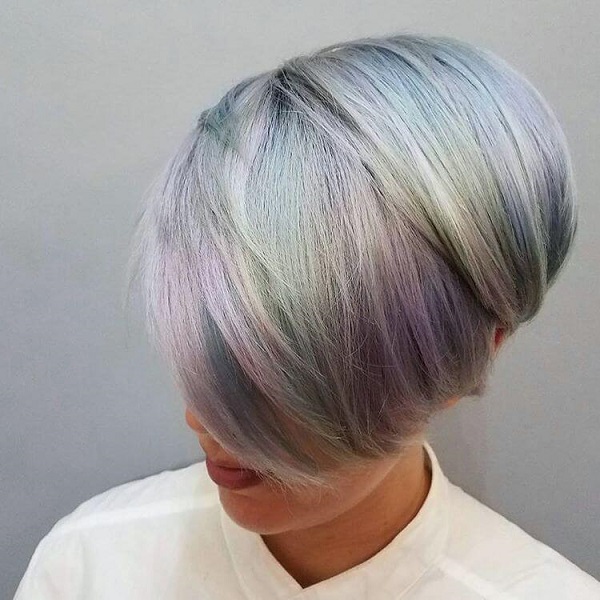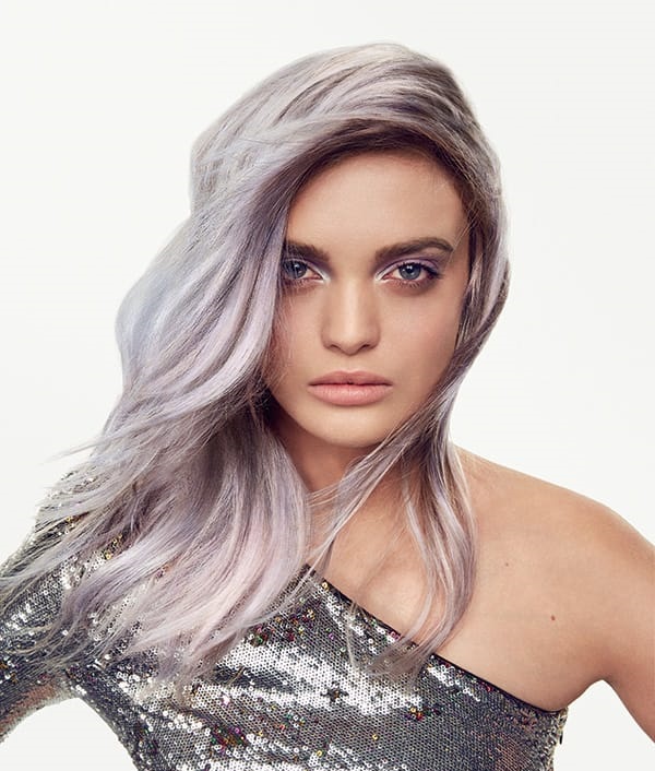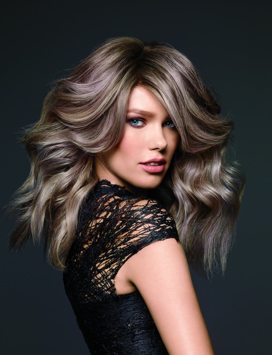 Starting to perform the shimmer dyeing, the stylist is simply obliged to “guess” the correct shade for a particular client, fully considering the individuality of her image. Those who have already thought about the problem of gray hair, will have an excellent opportunity to solve it with silver, platinum and ash shades, and the unusual shade of mountain lavender color allows you to create the most unearthly images and is becoming increasingly popular among our fashionable women of all ages.