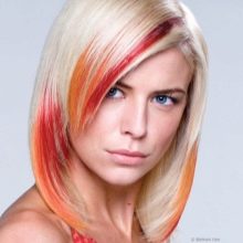 This technique is ideal for chubby fashionistas. It refreshes the face and helps the woman look more attractive. Make ombra in the traditional way, the band, with the effect of burnout, with tongues of flame.