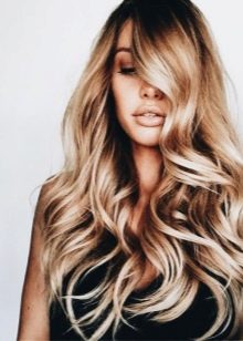 - Balayazh - the method of coloring the curls, in which the stylist brushes the applied pigment with a brush, achieving the most natural and almost imperceptible transition from the colored to the unpainted area. This technique is good because there is no need for correction when hair grows. Hairstyle looks natural and neat. The transition between the shades is smooth, using natural tones of pigments when coloring, due to which it is possible to both darken the strands and give them a glare effect.