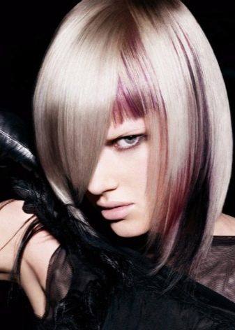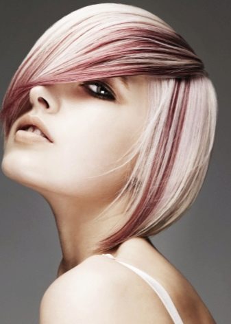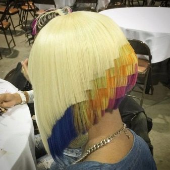 Hair coloring can be longitudinal, transverse and zonal (for example, if desired, you can paint only the temporal area or even the bangs). Today, the trend of creative coloring in different tones, which is performed on the curls of the back of the head, is gaining popularity. If you walk with flowing hair, creative coloring will not be visible, when stabbing strands up, it will open. This type of coloring is especially good for bright women of fashion who have to work in the office or study in educational institutions where there is a strict dress code.