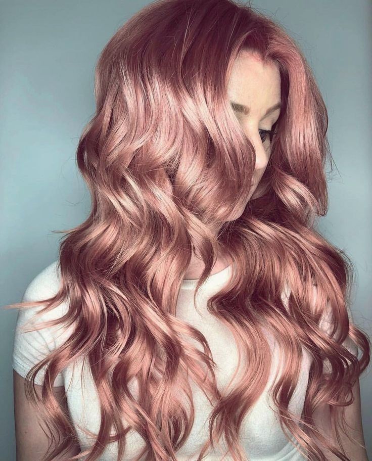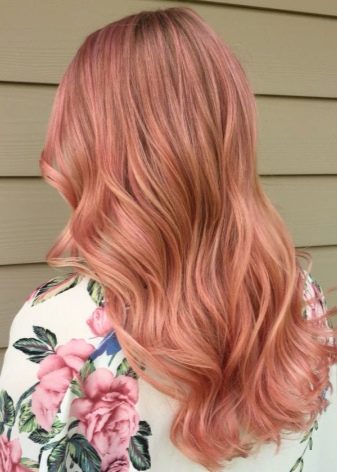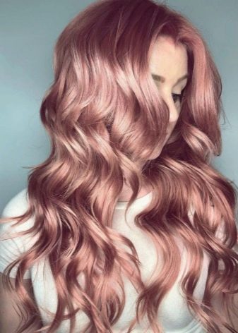 - Remarkably falls on dark blond hair rose gold shade, but for this purpose it is necessary to lighten the curls a little. The exception is made by women of fashion who have yellowish skin. According to reviews of brown-haired women who have already tried this paint on themselves, this is a complete change of image. True, the masters still advise not to experiment on their own, but to apply to the salons for this procedure, since it is the professional approach that determines the purity of the received tone, and hence the spectacular image.