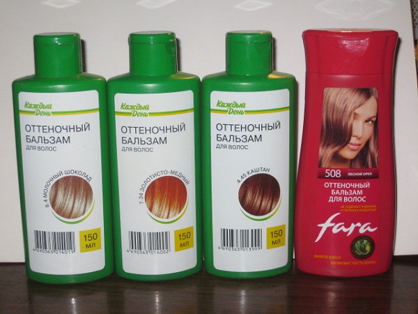 Renewing the tone of the hair without lightening will help toning with special tint balms that do not have in their composition frankly harmful chemical components that destroy the health and natural beauty of living hair. They are used similarly to ordinary shampoos, kept on hair for some time and washed off. However, these tools can be applied only once every 20 days, so as not to overdry strands and scalp. Gradually becoming more pale, the dye is completely washed off for a month, and even earlier, if you often wash your hair.