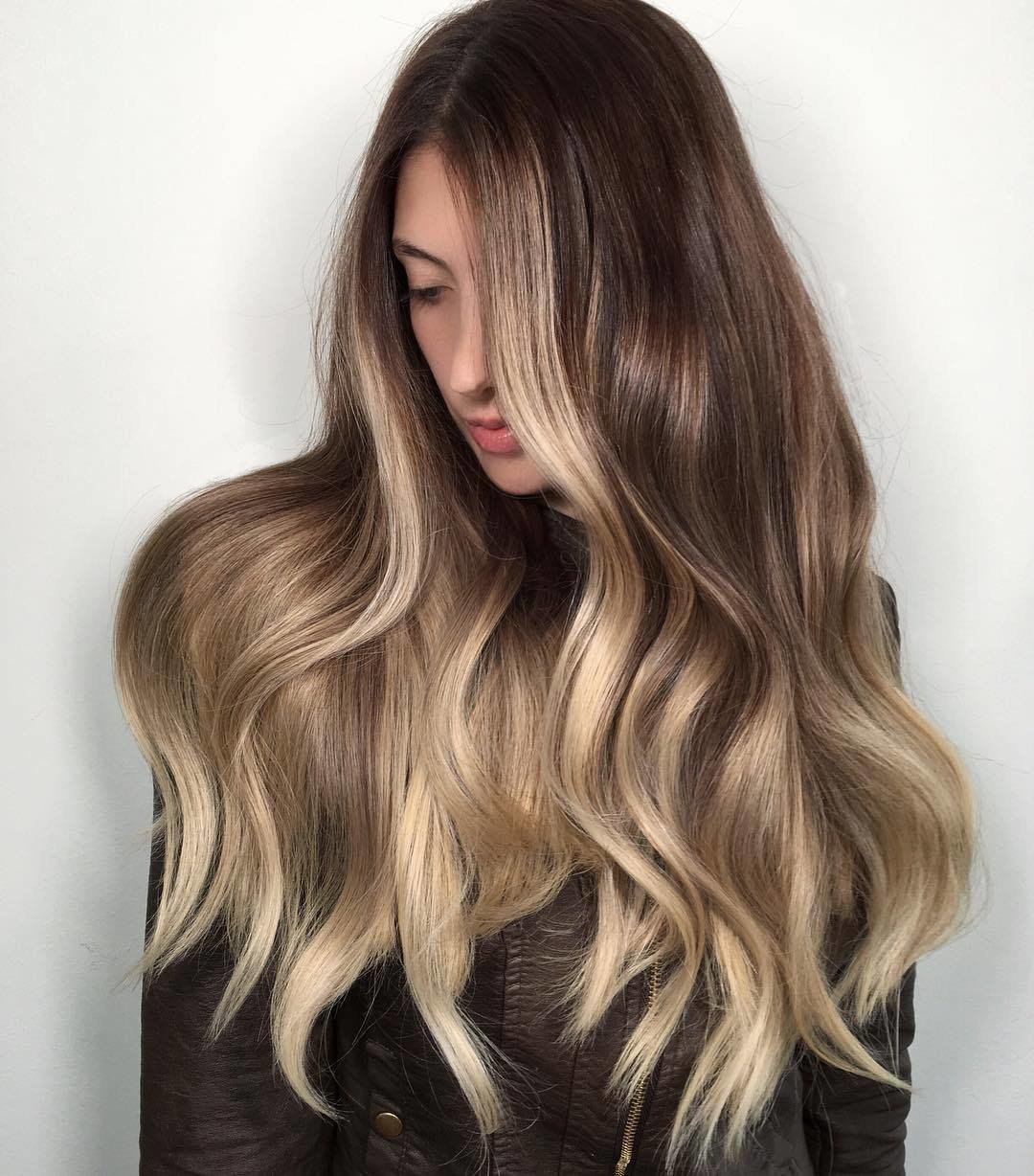 - Natural combination - dark blonde color, smoothly turning into a light tone., amber or arctic blond, which highlights the ends.These types of staining are mostly good for curls of medium length or ultra-long strands. The main thing is to choose the right shades by color type.