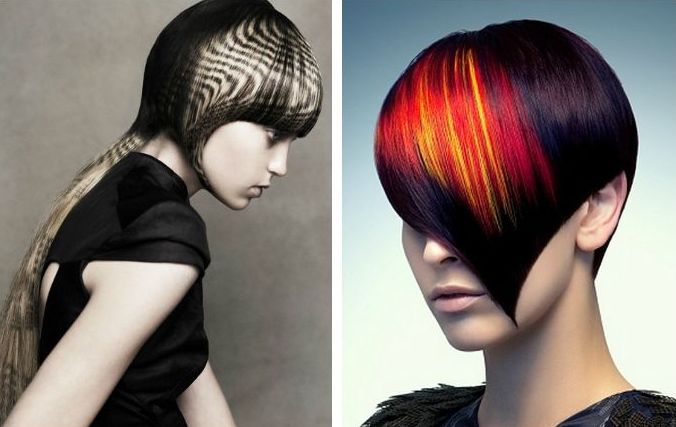 This is a very extraordinary coloring suitable only for the most creative personages, trying to stand out from the crowd and supporting fashion trends. It is suitable only for owners of smooth straight hair, on which the lines will look clear and expressive. Ideas of drawings can be any, among popular options - geometrical figures, vegetable patterns, leopard spots, feathers, various symbols.