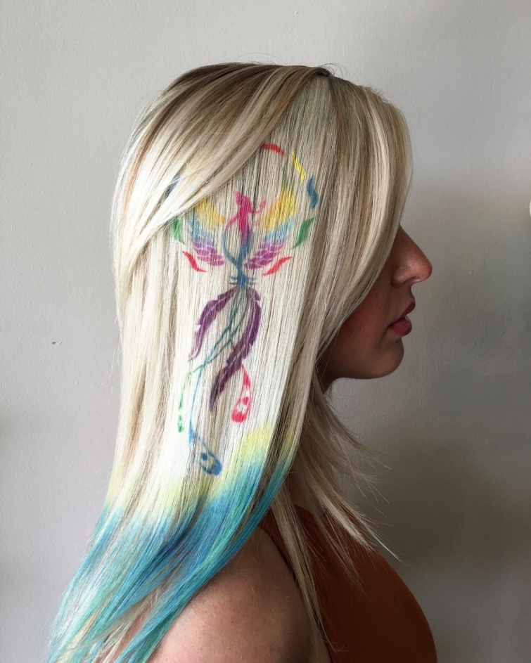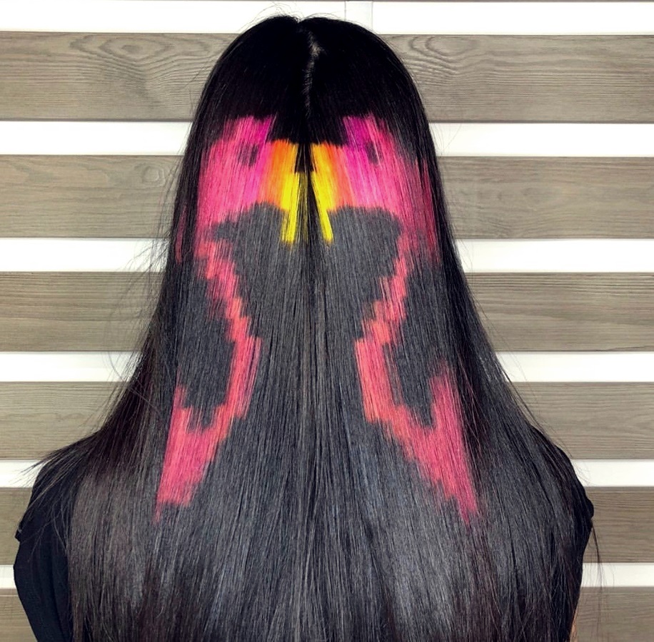 - A real piece of art on hair can come out with screen dyeing. It can be absolutely any pattern or pattern with a choice of all sorts of shades like rainbow and bright, and calm and natural. But the technique requires the hands of a master to make it look perfect and, indeed, beautiful.