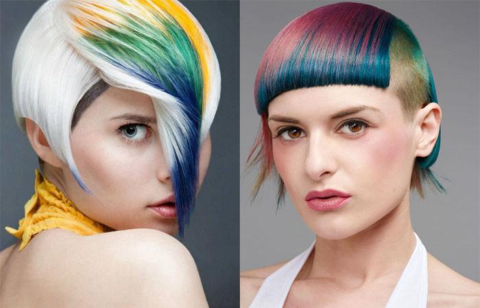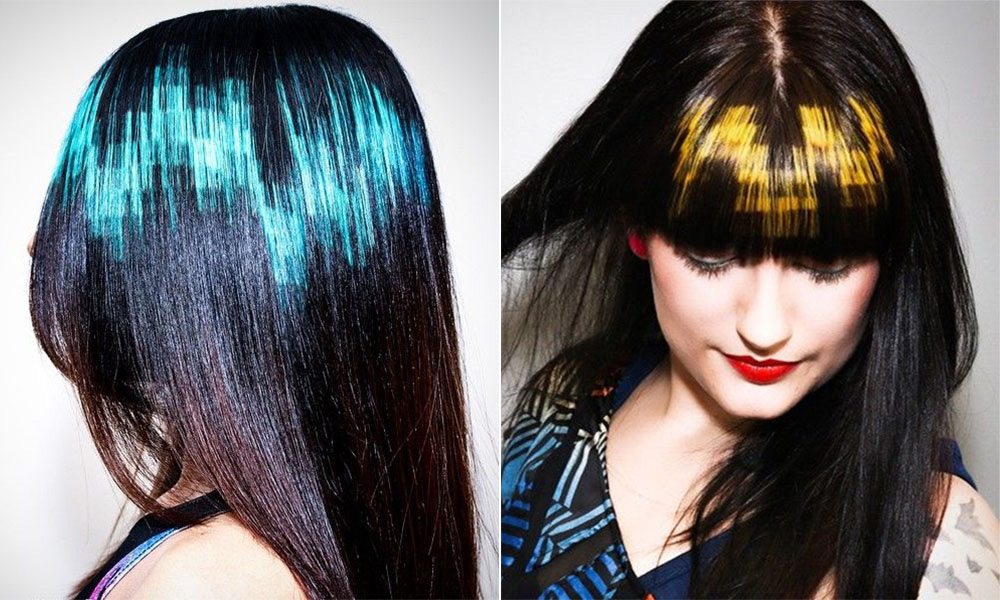 - Pixel staining also continues to be in fashion. Bright contrasting pattern on the hair will attract attention and will look original. In this form of staining do not be afraid of bright colors. On the contrary, you can safely experiment with any rainbow colors.